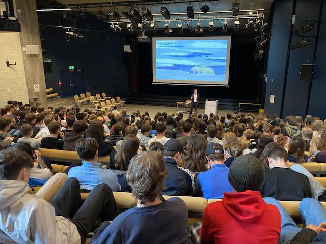 Reto Knutti referiert in der Aula.