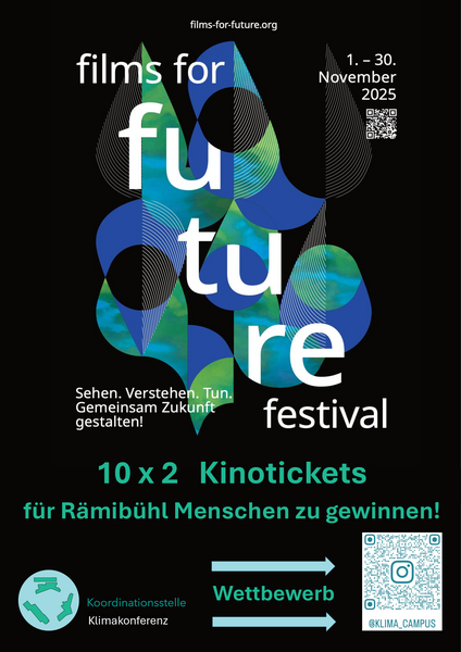 Einen Monat lang verwandelt das Films for Future Festival Zürich in einen Ort für Dialog, Emotion und Veränderung. Klimacampus ermöglichte es Rämibühlschüler:inen verschiedene Filme und die darauffolgenden Dialoge und Reflexionen zu besuchen.